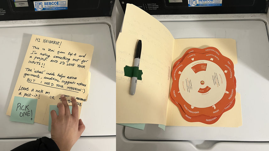 Air It Out is a public-facing intervention designed to be embedded in the overlooked corners of routine life—like the neighborhood laundromat. It explores how brands, landlords, and community spaces might design better end-of-use experiences. And to understand what “threshold to care” really means in the context of everyday maintenance.